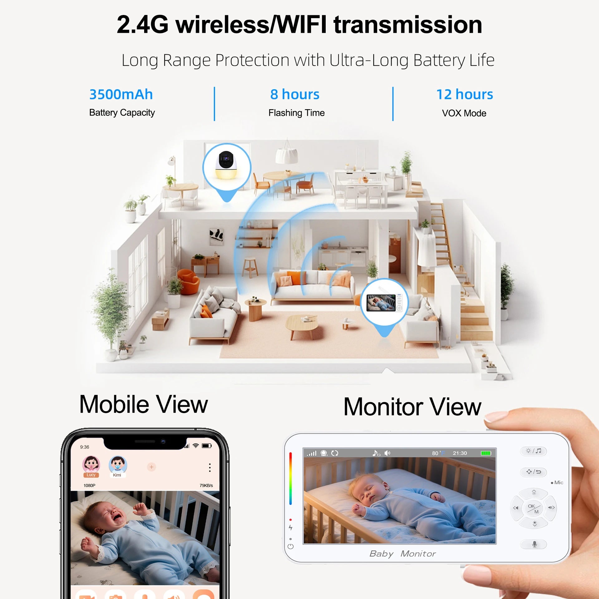 4.3-Inch Baby Video Monitor with 4x Zoom Camera Motion/Sound Detection Soft Night Light