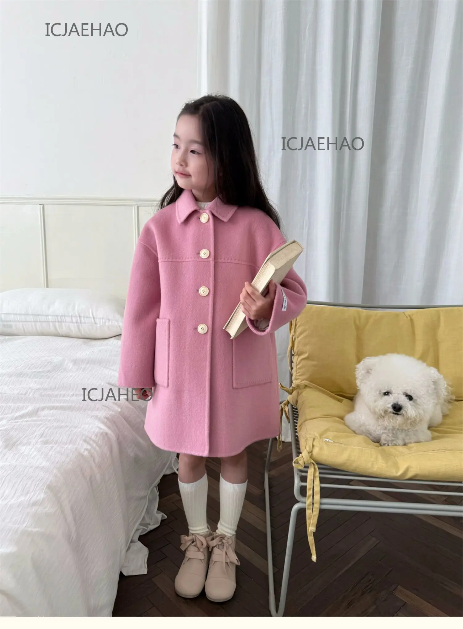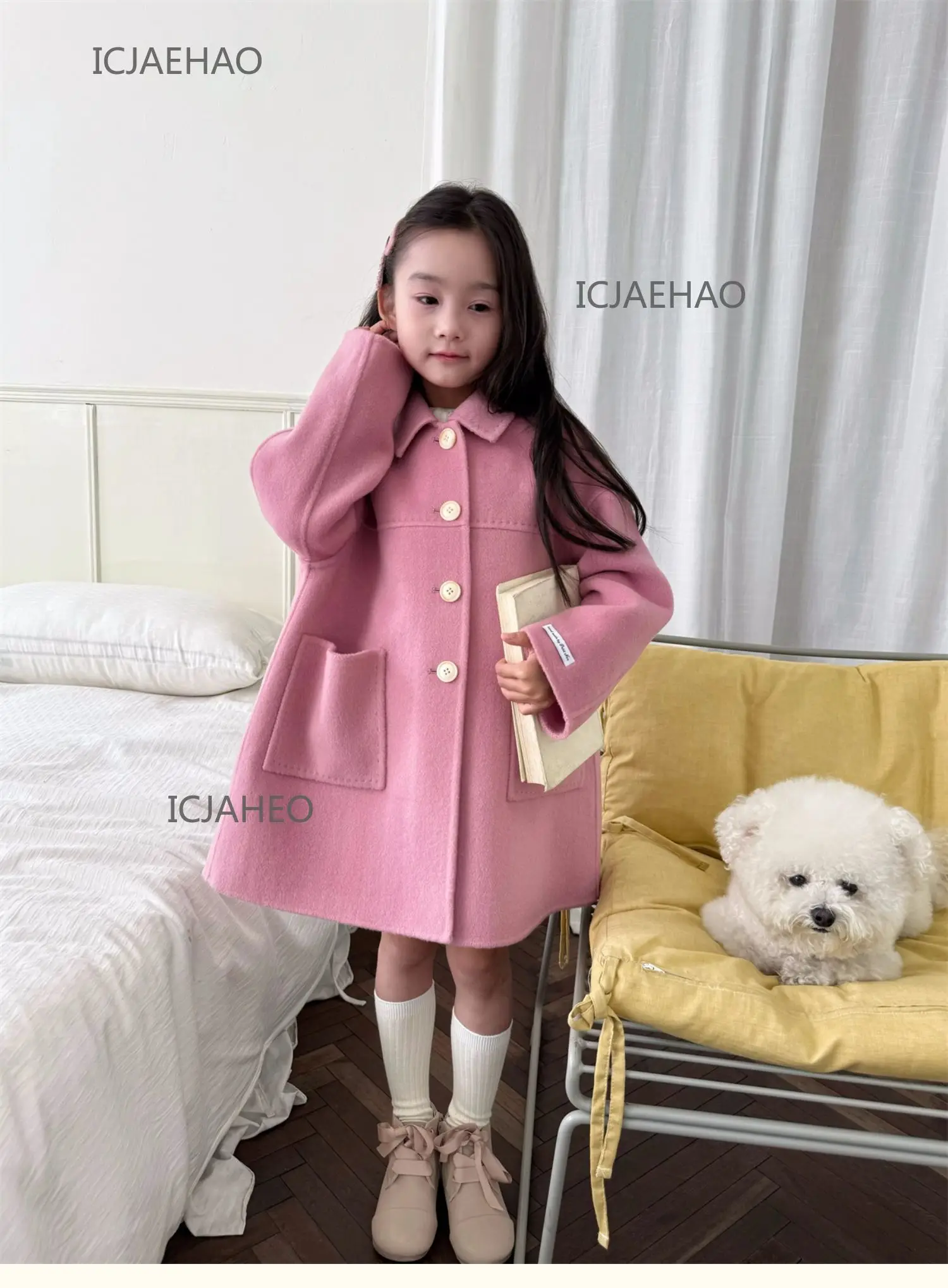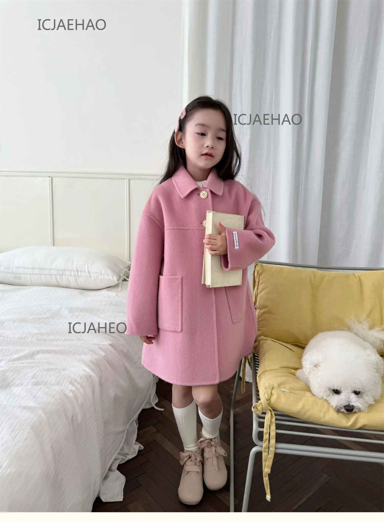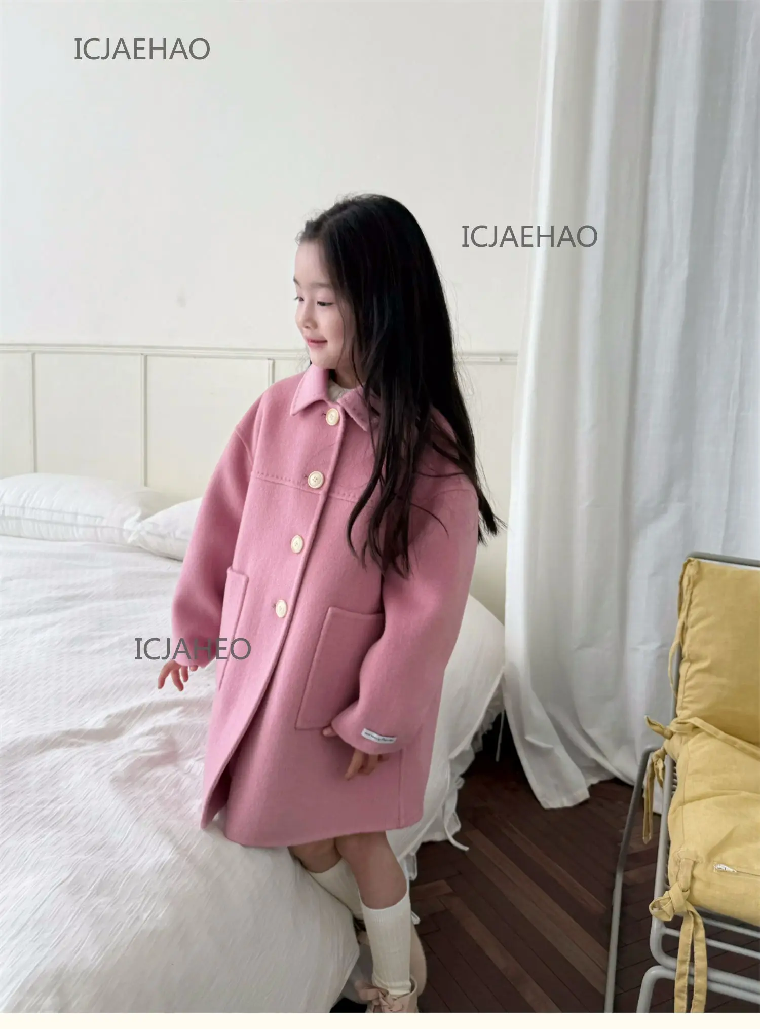 Teen Girl Clothes Children Wool Double Faced Girls Peach Pink Coat Costume Handmade Cute Matching Winter Kids Outerwear Clothes