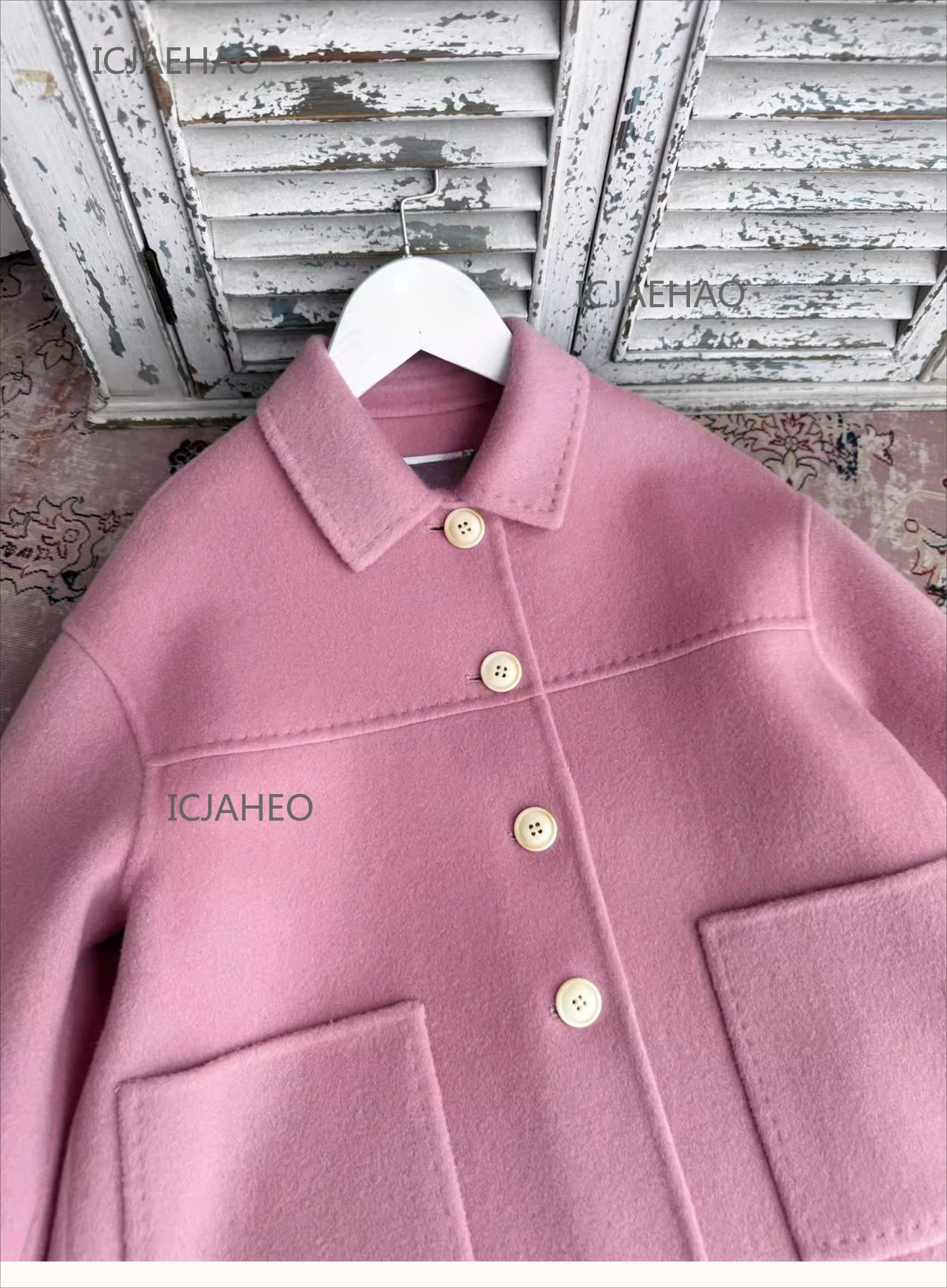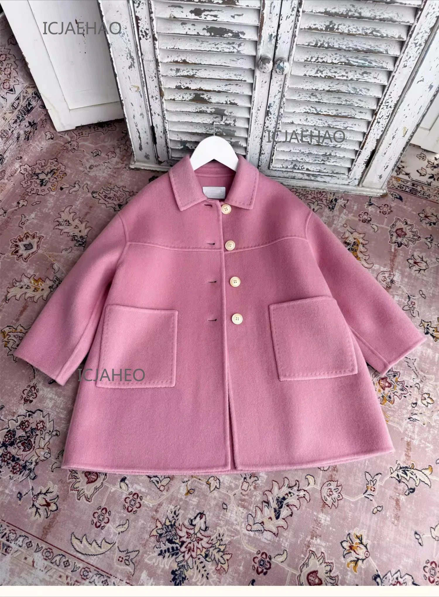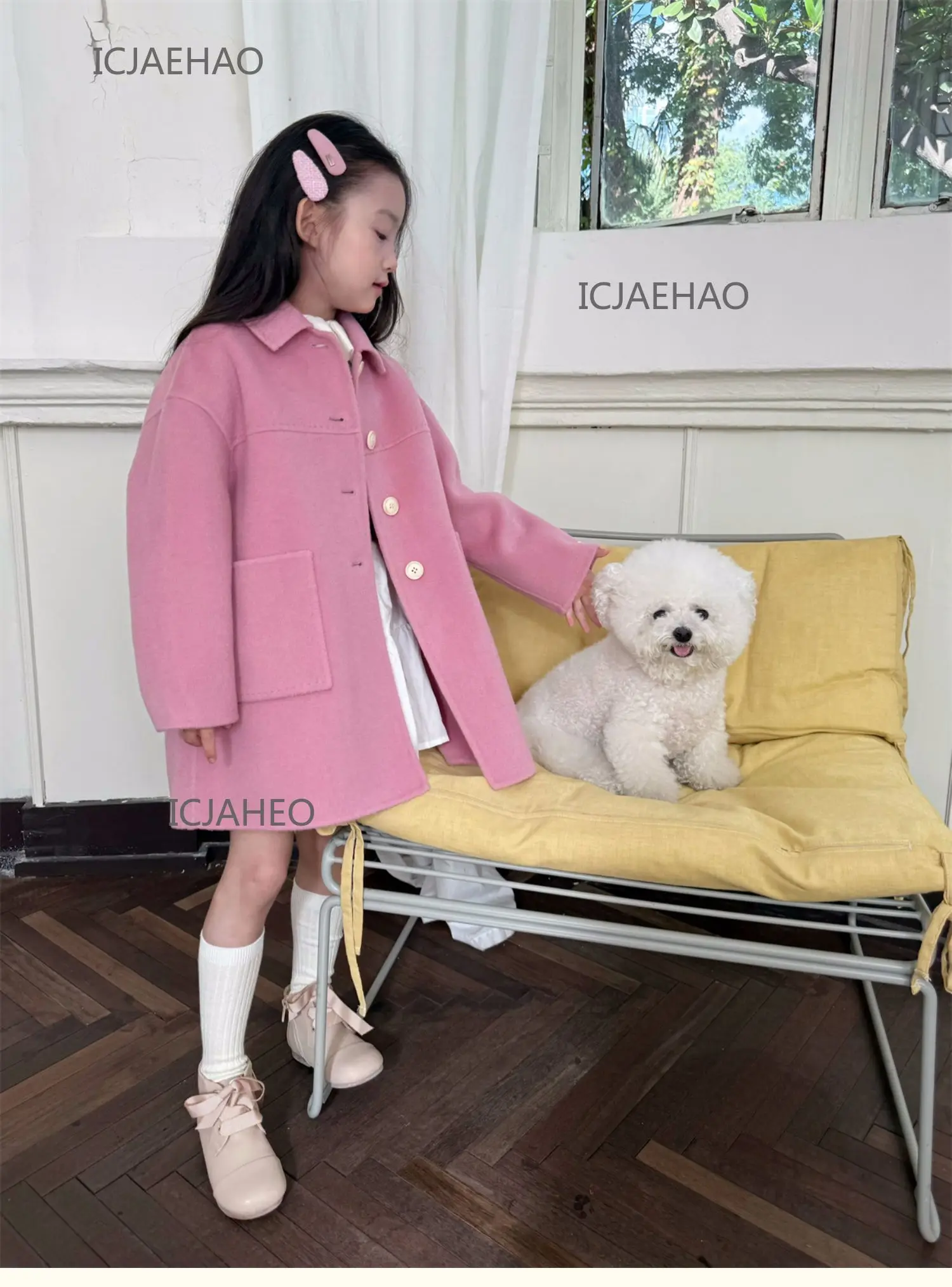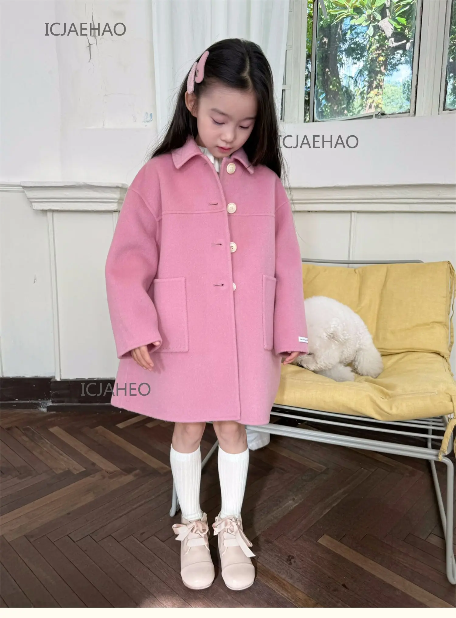 Teen Girl Clothes Children Wool Double Faced Girls Peach Pink Coat Costume Handmade Cute Matching Winter Kids Outerwear Clothes