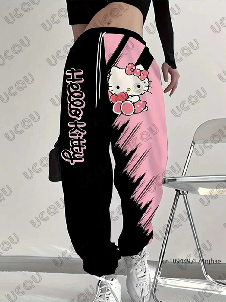 Cartoon Cute Y2K HelloKitty Print: Women Trousers