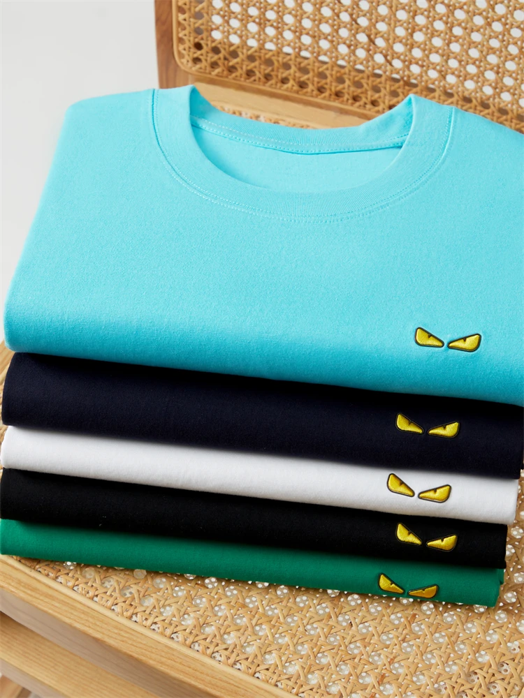 O-Neck Eyes Embroidery Short Sleeve Shirt