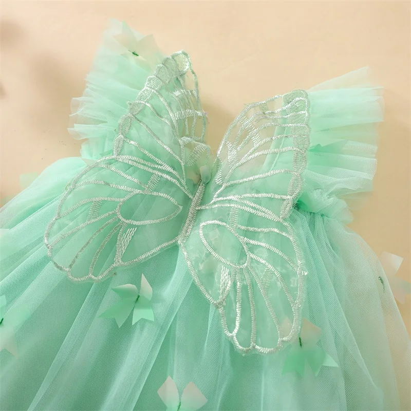 Baby Girl Princess Dress Ruffle Sleeveless Square Neck Bow Tulle Dress Toddler Party Dress with Wings