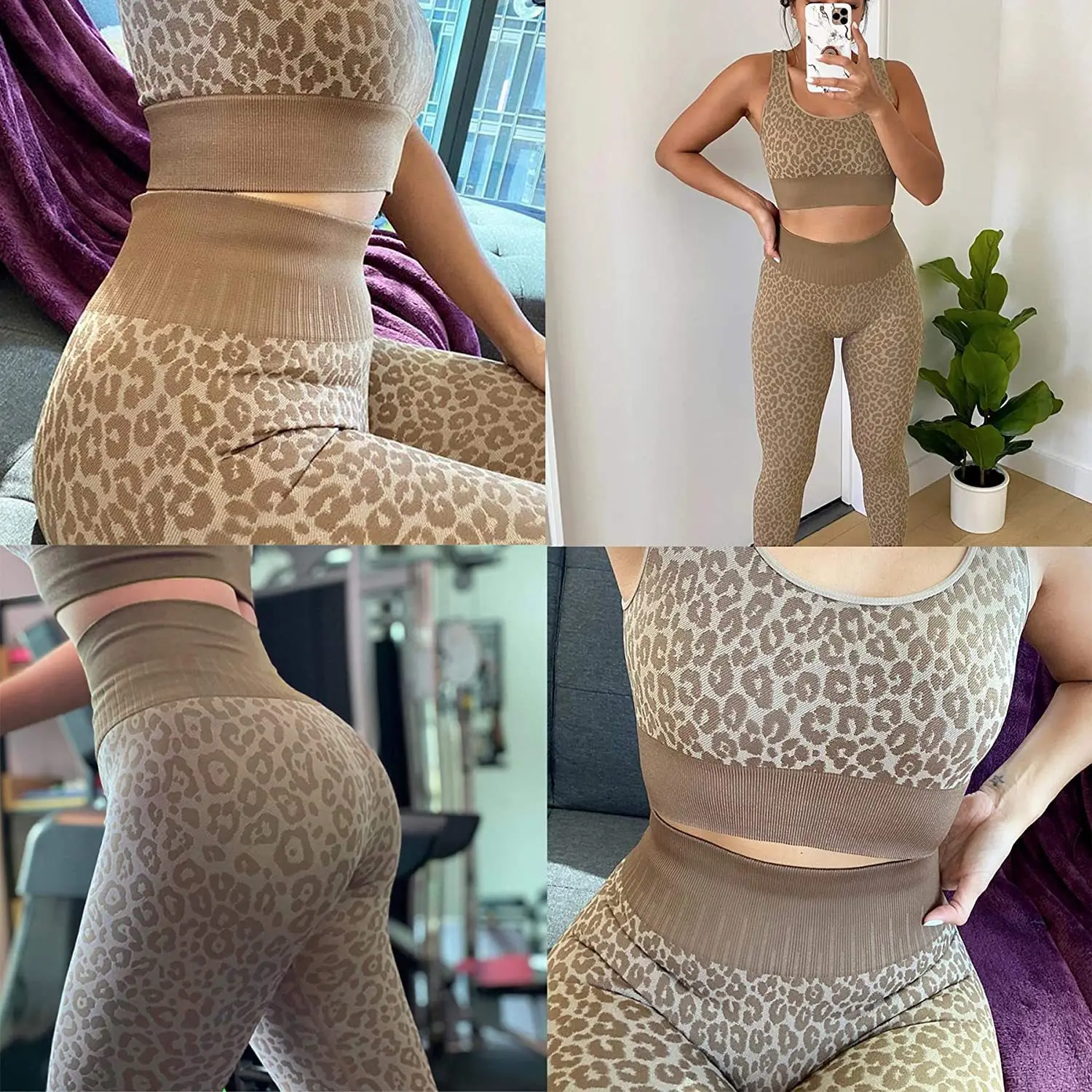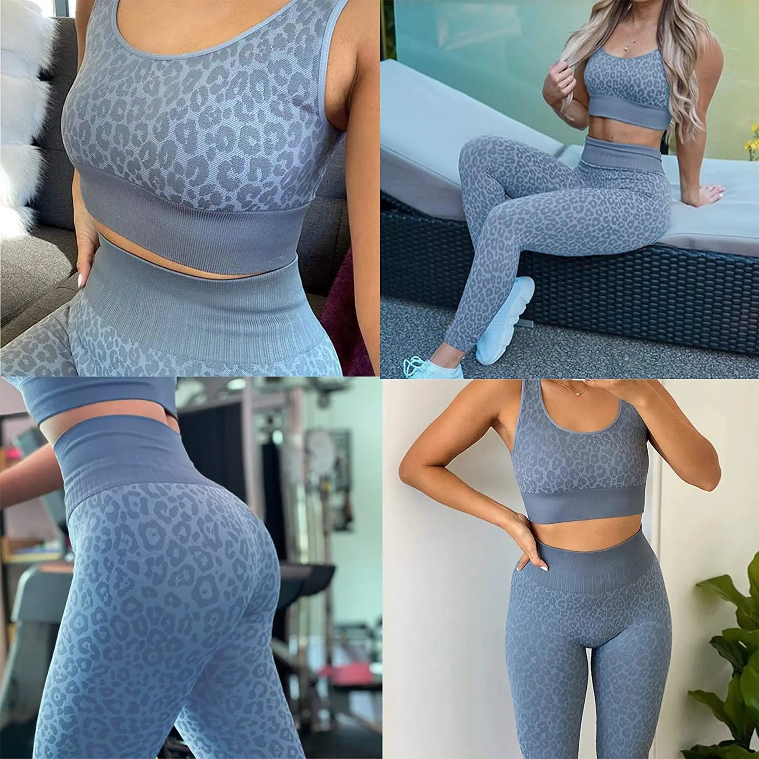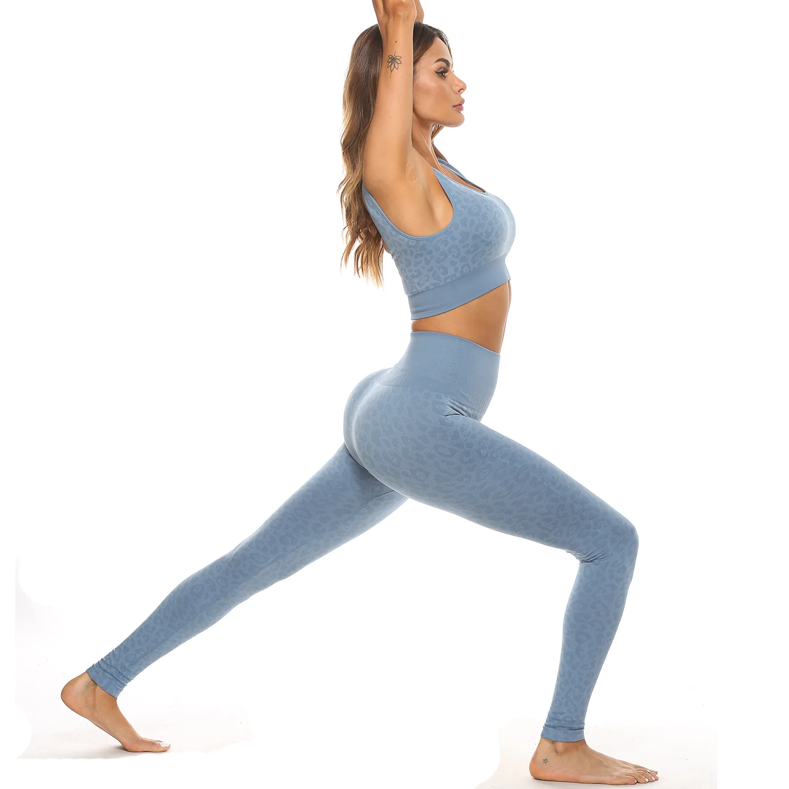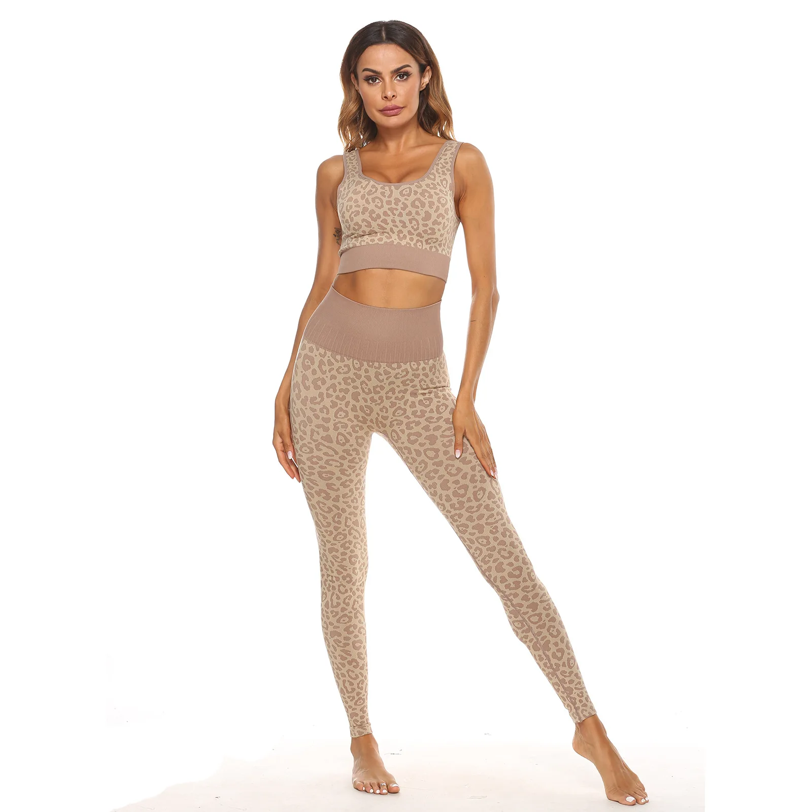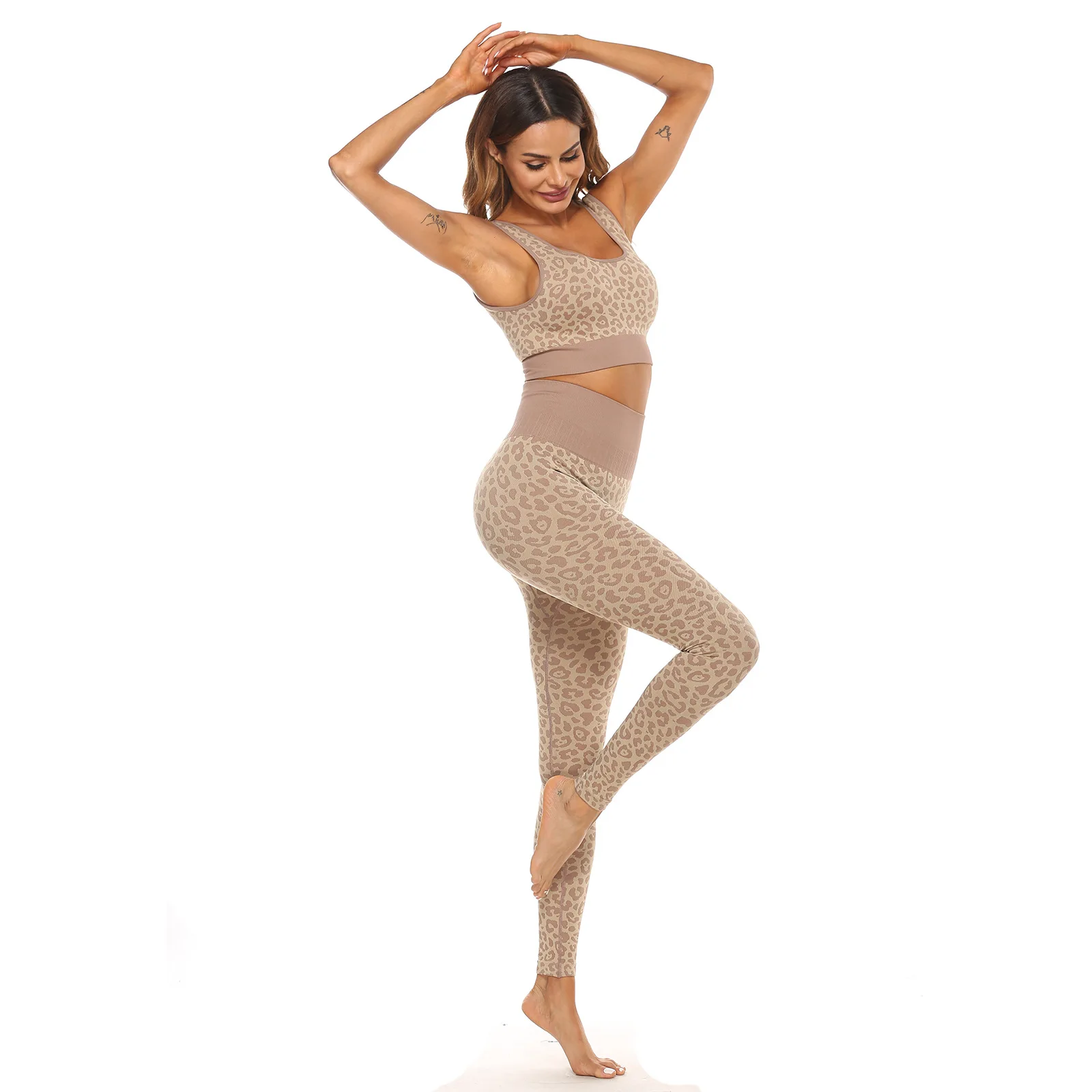 Deep U Beauty Back Sports Bra Seamless knit high-waisted hip lift fitness pants leopard print yoga set |